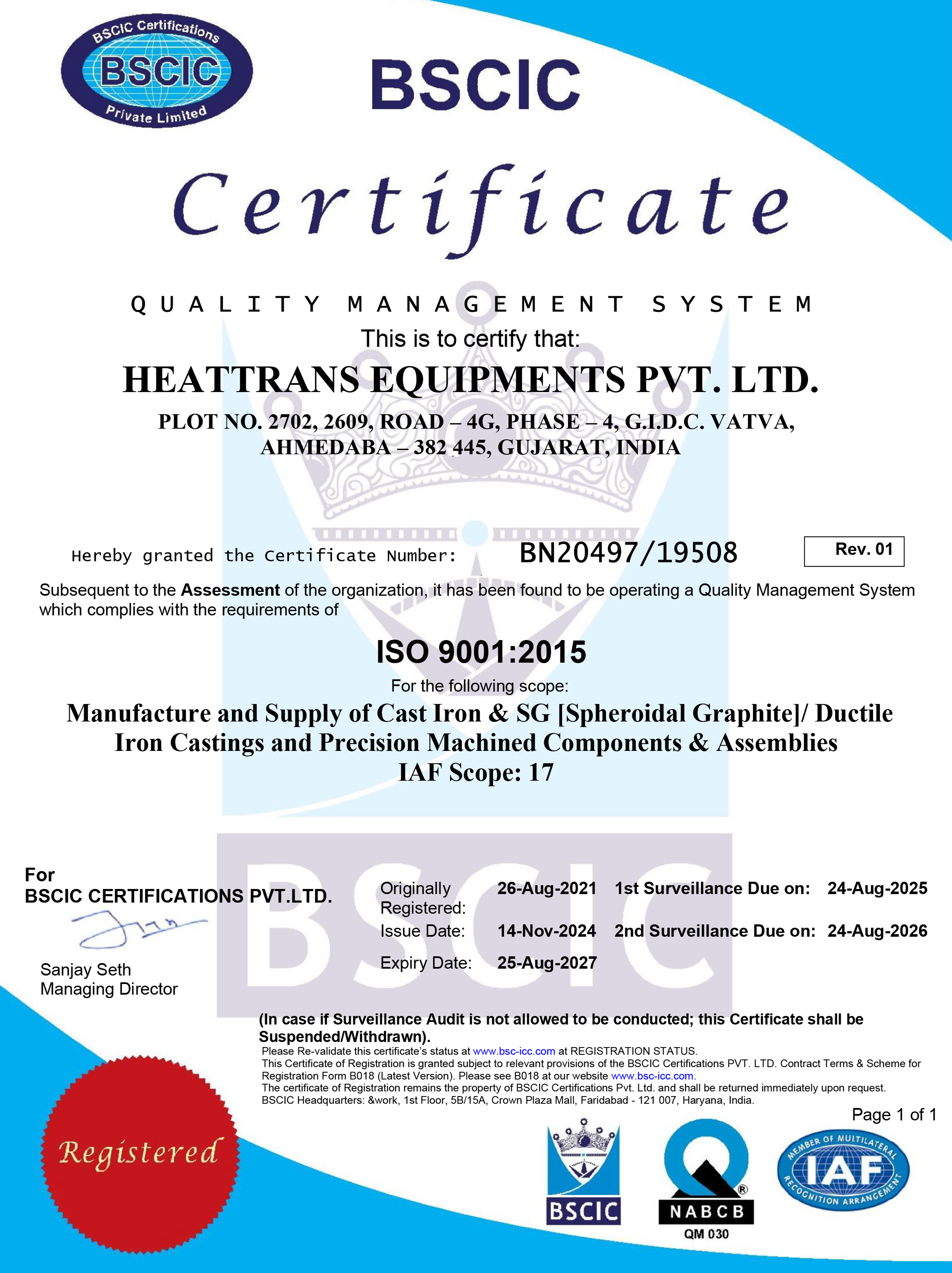 We at HEATTRANS EQUIPMENT PVT. LTD., which is engaged in manufacture & supply of Cast Iron, SG/Ductile iron castings and precision machined components & assemblies, are committed to meet global standards of manufacturing and will strive for excellence in all areas of business by sustain and enhance the satisfaction level of our customers and interested parties and continual improvement as per context of organization and support its strategic direction through our quality management systems and performance.